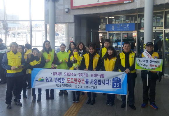 이번 캠페인은 예산군청 민원봉사과 직원과 도로명주소 서포터즈 등이 참여해 새주소 홍보 안내문과 홍보물품을 예산역을 이용한 귀성객, 시장을 찾은 군민 및 주변상인들에게 나눠 주며 도로명주소의 편리함에 대해 홍보했다.