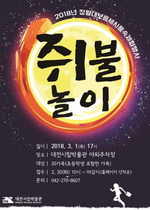 쥐불놀이 행사는 시립박물관 홈페이지 '교육신청'란에서 선착순으로 접수 가능하며, 그 밖의 자세한 내용은 대전시립박물관 홈페이지에 공지사항을 참고하면 된다.