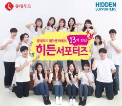 롯데푸드 담당자는 "히든서포터즈는 식품 마케팅에 관해 생생한 경험을 할 수 있어 평균 10대 1의 경쟁률을 기록할 만큼 인기가 높다"며 "자신의 아이디어로 무장한 대학생들의 많은 지원 바란다"고 말했다.