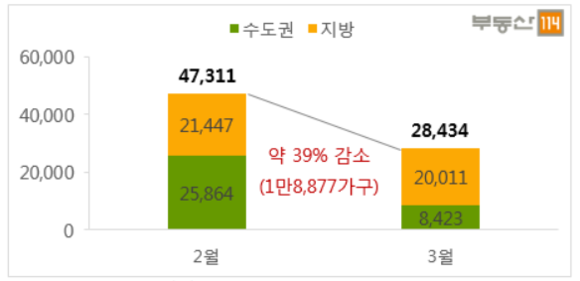 한편 수도권에서는 총 8423가구가 3월 공급된다. 전월(2만5864가구)대비 크게 감소한 물량이지만 지난해(2058가구)와 비교하면과 약 4배 이상 많은 물량이다.