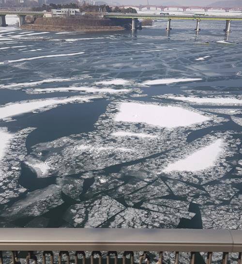 지난주 평일, 행선지로 향하던 중 유리창 너머 바깥 풍경이 눈에 띄었는데요. 한강까지 꽁꽁 얼렸던 추위가 한 풀 가시고, 자개처럼 보이기도 하는 얼음조각이 널려 있습니다. 이 모습이 아름다운 한편으로는 두려운 마음도 살짝 들었는데요.
