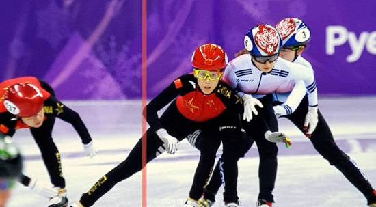 ISU가 공개한 사진을 보면 아웃코스에서 경기를 펼치는 중국의 판커신은 인코스에서 달리는 최민정(20·성남시청)을 몸으로 밀며 진로를 방해하고 있다.