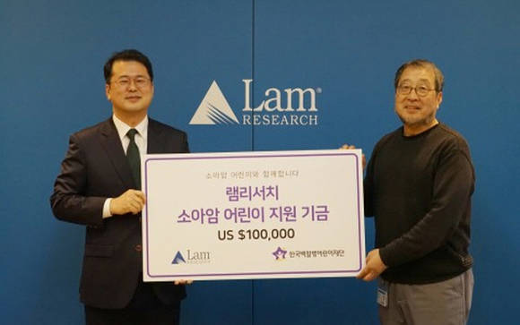 램리서치는 지난 1월18일 경기도 성남시에 있는 한국 지사 '램리서치코리아'에서 소아암 어린이를 돕기 위해 미국돈으로 10만 달러를 '한국백혈병어린이재단'에 전달했어요.