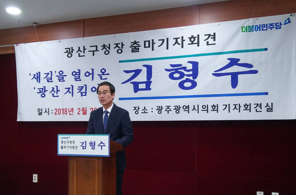 김형수 공동대표는 26일 광주광역시의회 브리핑룸에서 기자회견을 갖고 "삶의 변화, 새로운 '광산공동체'라는 새로운 역사를 쓰고자 광산구청장 도전을 선언한다"고 밝혔다.