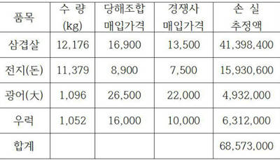 게다가 조합은 특정업체부터 수년간 축·수산물을 구매한데다 가격 변동없이 일률적인 가격으로 구매해 특정업체 밀어주기와 뒷거래 의혹에 휩쌓였다.