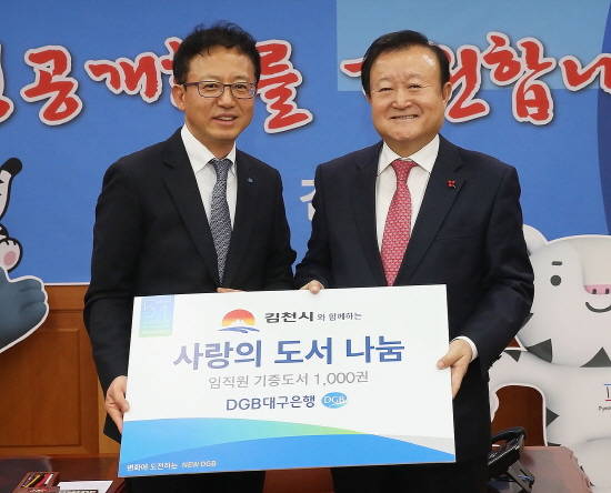 이날 행사에 참석한 이준걸 DGB대구은행 본부장은 박보생 김천시장에게 "지역민을 위한 지식 나눔 활동을 꾸준히 하고 있는 DGB대구은행 임직원의 마음이 김천 시민에게 전해지길 바란다"고 전했다.