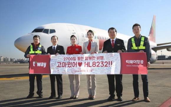 또 티웨이항공은 실제 1호기를 들여올 때부터 함께 한 비행기 기내 승무원, 조종사, 비행기를 수리하는 직원 등과 함께 비행기를 보내면서 기념촬영도 같이했어요.