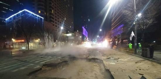 경찰과 소방당국은 해당 구간의 교통을 통제하는 한편 정확한 온수 배관 파열 원인을 조사 중이다.