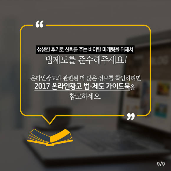 생생한 후기로 신뢰를 주는 바이럴 마케팅을 위해 법제도를 반드시 준수해야겠습니다.