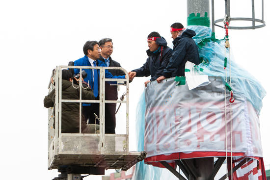 이날 강 전 의원은 고공 농성 장소인 광주 광산구 송신탑을 직접 올라가 조삼수 대표지회장과 정송강 곡성지회장을 만났다.