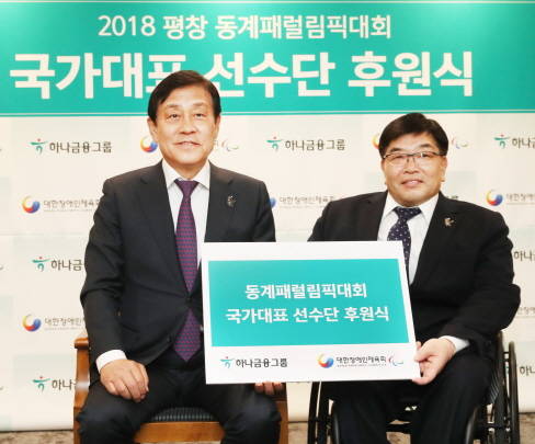 이날 후원식을 통해 하나금융그룹은 평창 패럴림픽 국가대표를 비롯한 장애인스포츠 발전을 위해 향후 10억원을 후원하기로 했다. 또 휠체어컬링, 아이스하키, 바이애슬론, 크로스컨트리, 스노보드, 알파인스키 등 6개 장애인 동계종목을 모두 지원할 계획이다.