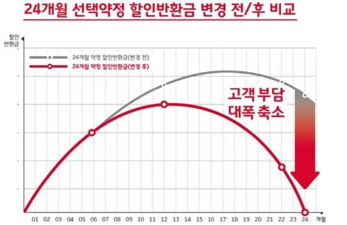 SK텔레콤은 이를 고쳐 약정 기간 절반을 채운 시점부터는 위약금이 대폭 감소하기 시작해 약정 만료 시점엔 0원에 수렴하도록 구조를 개선했다.