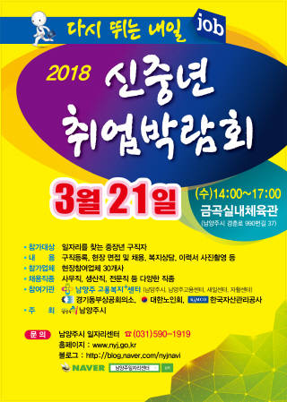 [프라임경제] 남양주시(시장 이석우)는 오는 21일 오후 2시부터 5시까지 금곡실내체육관에서 '신(新)중년 취업박람회'를 개최한다고 7일 밝혔다.