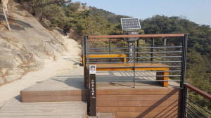 특히 곳곳에 설치되어 있는 둘레길 쉼터에는 태양광 휴대폰 급속충전기를 설치하여 잠깐의 휴식시간에 휴대폰을 충전할 수 있는 편익을 도모하고, 간혹 예기치 않은 혹한의 날씨에도 안심하게 체온 유지가 가능한 바람막이를 설치하는 등 이용객들의 건강에도 만전을 기했다.