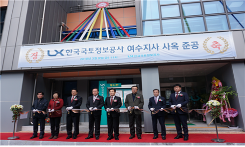 [프라임경제] LX한국국토정보공사(사장 박명식) 여수지사는 9일 웅천택지개발지구에 위치한 신사옥에서 조만승 사업본부장, 허의환 광주전남지역본부장, 주철현 여수시장, 이선효 여수시의회 부의장, 박병춘 전라남도 토지관리과장, 유관기관 기관장 등 100여명이 참석한 가운데 사옥 준공식을 진행했다.
