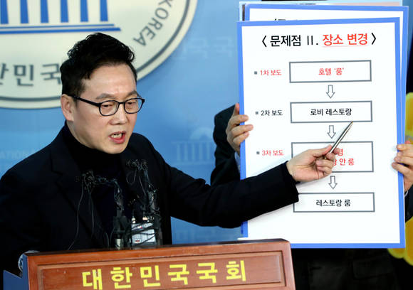 이날 국회 정론관에서 가진 회견에서 정 전 의원은 "국민과 언론을 속게 한 기획된 대국민 사기극"이라고 목소리를 높였다. 특히 네 차례에 걸친 프레시안 보도가 사건 전후맥락 및 사실관계에서 미묘한 말 바꾸기가 벌어졌음을 꼬집었다.
