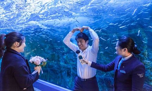 한화 아쿠아플라넷 여수는 13일 오후 1시50분에 아쿠아리움 3층 홀에서 선착순 다섯 커플과 '사랑을 고백해봄' 이벤트를 진행한다.