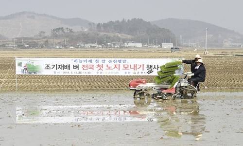 [프라임경제] 전남 순천시(시장 조충훈)는 12일 해룡면 신대리에서 농업인, 공무원, 농협관계자 등 100여명이 참석한 가운데 올해 전국 첫 노지 모내기를 실시했다고 13일 알렸다.