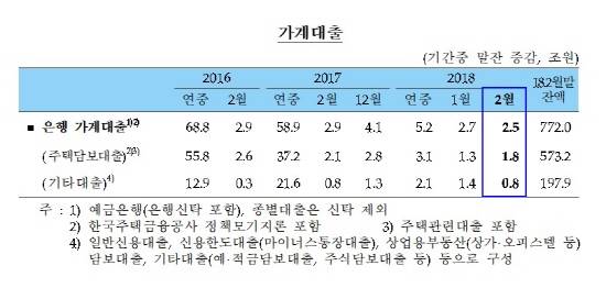 한은 관계자는 "설 상여금 유입으로 마이너스 통장 등 대출 상환이 이뤄지면서 기타대출 증가액이 1월보다 줄었다"며 "아직까진 예년에 비해 증가액 규모가 적은 수준은 아닌 것으로 보인다"고 설명했다.