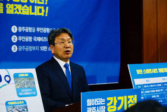 강 예비후보는 15일 오전 광주시의회 브리핑룸에서 첫 번째 공약 발표 기자회견을 갖고 '500만 광주광역권시대'를 열 8대 플랜중 제1 플랜인 광주무안통합국제공항 조성에 대한 구체적인 실현방안을 내놨다.
