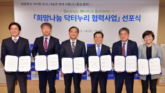전남대병원은 지난 14일 시청 3층 비즈니스룸에서 윤장현 광주광역시장·이삼용 병원장·박홍주 전남대치과병원장·문경래 희망나눔 닥터누리 협력사업 추진단장을 비롯해 광주지역 5개 의료기관 관계자 등이 참석한 가운데 협약식을 진행했다고 16일 알렸다.