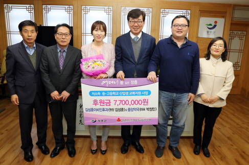 장흥군은 기탁된 후원금을 교복상품권으로 가정 형편이 어려운 신입생 35명에게 전달할 예정이다.