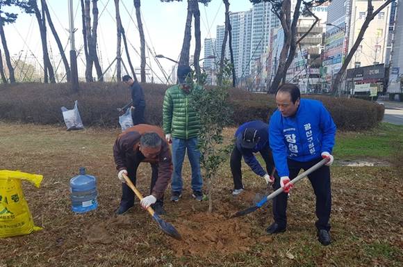 이날 오전 장 예비후보는 수완지구 임방울대로 일대에서 자원봉사자 30여명과 함께 40만 광산구민의 염원을 담아내는 '광산 행복나무' 기념식수하며 생활쓰레기 수거 등 자연정화 캠페인 행사를 진행했다.