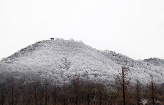 [프라임경제] 낮과 밤의 길이가 같다는 '춘분'. 21일 전남 담양군 담양읍에 위치한 남산이 새하얀 눈으로 덮여 이색 장관을 연출하고 있다.