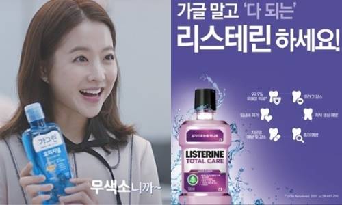 여기에 한국존슨앤드존슨은 방송광고를 통해 '가글 말고 다 되는 리스테린 하세요!'라면서 반격하고 나섰습니다. 동아제약이 가그린을 무색소 구강관리 제품인 점을 내세우자 한국존슨앤드존슨은 리스테린이 색소보다 구강관리에 더욱 집중한 제품이라는 것을 부각시킨 것이죠.