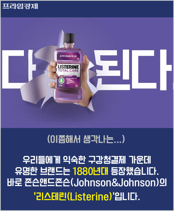 우리들에게 익숙한 구강청결제 가운데 유명한 브랜드는 1880년대 등장했습니다. 바로 존슨앤드존슨(Johnson&Johnson)의 '리스테린(Listerine)'입니다.