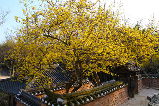 소쇄원 '제월당'과 '광풍각'에 가면 만발한 산수유 꽃을 만날 수 있다. 담양 소쇄원(명승 제40호)은 우리나라 선비의 고고한 품성과 절의가 엿보이는 아름다운 정원으로 조선시대를 대표하는 정원이다.