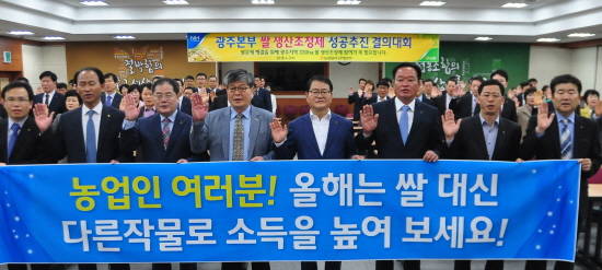 [프라임경제] 농협광주본부(본부장 김일수)는 3일 지역본부 대강당에서 쌀값 안정을 통한 농가소득증대를 위한 '쌀 생산조정제 사업' 성공실천 결의대회를 개최했다.