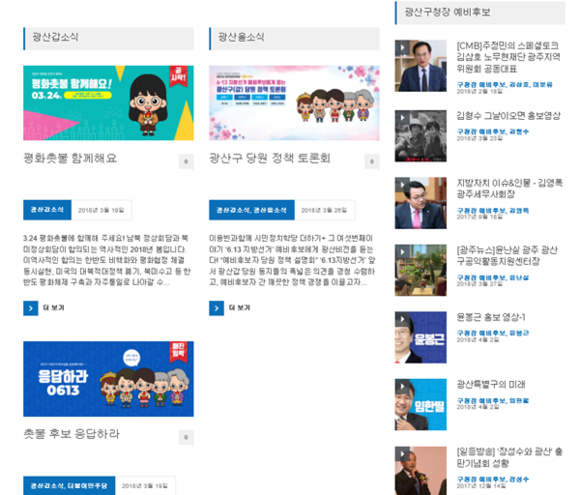 http://촛불후보.com을 통해 접속하면 광산지역의 예비후보자 들의 정보를 조회할 수 있으며 누구나 참여하여 의견을 제시할 수 있다.