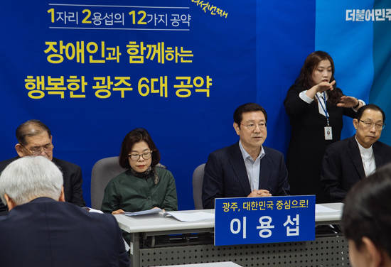 이용섭 예비후보는 4일 광주시의회 기자 브리핑룸에서 '1자리·경제시장 2용섭의 12대 공약' 중 여섯번째인 '장애인과 동행하는 광주 만들기 6대 공약'을 발표했다.