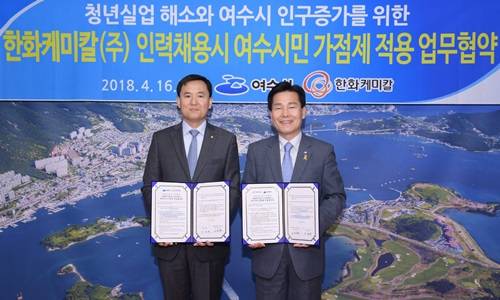 주철현 시장은 "한화케미칼의 동참으로 취업을 앞둔 지역 인재들이 직접 혜택을 볼 수 있게 됐다"며 감사의 뜻을 표했다.