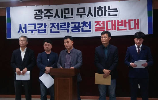 이들은 "그동안 합리적인 절차에 의해 진행되던 서구갑 재보궐선거가 납득할 만한 이유 없이 전략공천지역으로 지정됐다"며 "추미애 대표가 추진하는 전략공천은 광주시민을 무시하는 처사"라고 목소리를 높였다.