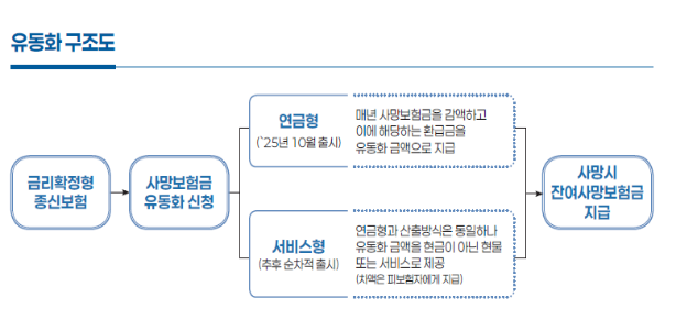 이번 제도는 금리 확정형 종신보험의 사망보험금(9억원 이하)을 담보로, 납입기간 10년 이상인 계약 중 일정 요건을 충족한 가입자를 대상으로 한다. 가입자는 사망보험금을 담보로 일정 비율을 생전 연금처럼 받을 수 있으며, 필요 시 유동화를 중단하거나 조기 종료한 뒤 재신청할 수도 있다.