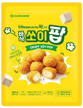 바삭쏘이팝은 올해 1월과 4월에 출시된 '바삭두부텐더', '바삭카츠너겟'에 이어 선보이는 바삭시리즈의 세 번째 제품이다. 아워홈만의 최적화된 튀김옷 배합 기술을 적용해 바삭함과 유지력을 높인 것이 특징이다.