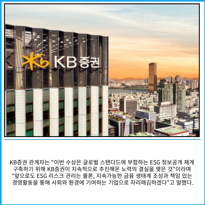 이번 수상은 KB증권이 지속가능경영 활동의 체계를 꾸준히 고도화하고, ESG 정보공개 수준의 투명성과 신뢰성을 강화해온 노력이 대외적으로 인정받은 성과다.
