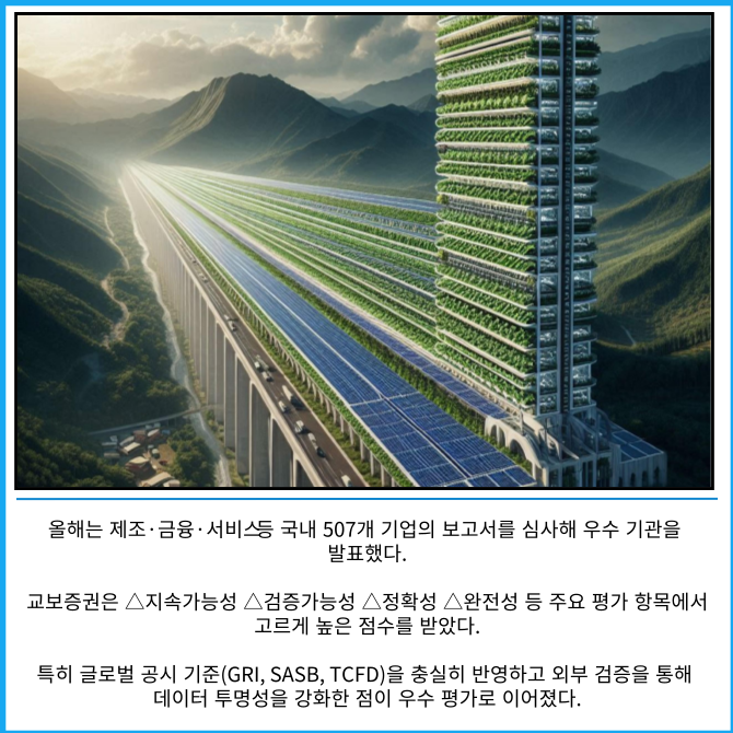[프라임경제] 교보증권(030610)은 한국표준협회 주관 '2025 대한민국 지속가능성대회'에서 4년 연속 우수 보고서상을 수상했다고 27일 밝혔다.