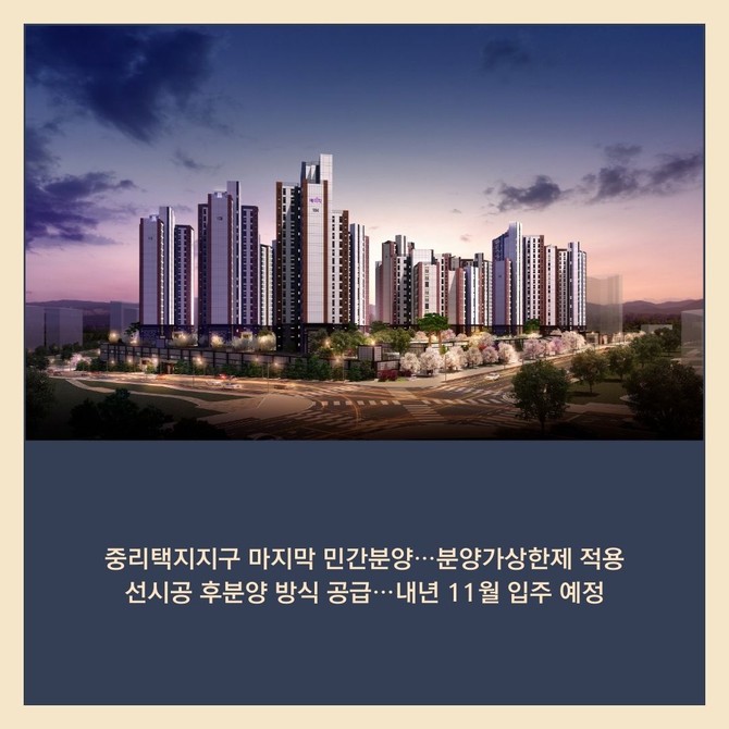[프라임경제] 이천 중리택지지구 마지막 민간분양 단지 '금성백조 예미지'가 견본주택을 열고 본격 분양에 나섰다. 단지는 분양가상한제 적용과 내년 11월 입주가 가능한 '선시공 후분양'으로 실수요자의 관심이 집중되고 있다.