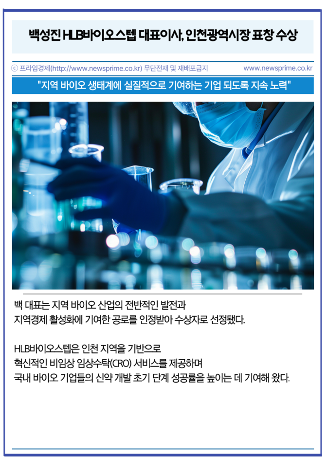 [카드] 백성진 HLB바이오스텝 대표이사, 인천광역시장 표창 수상