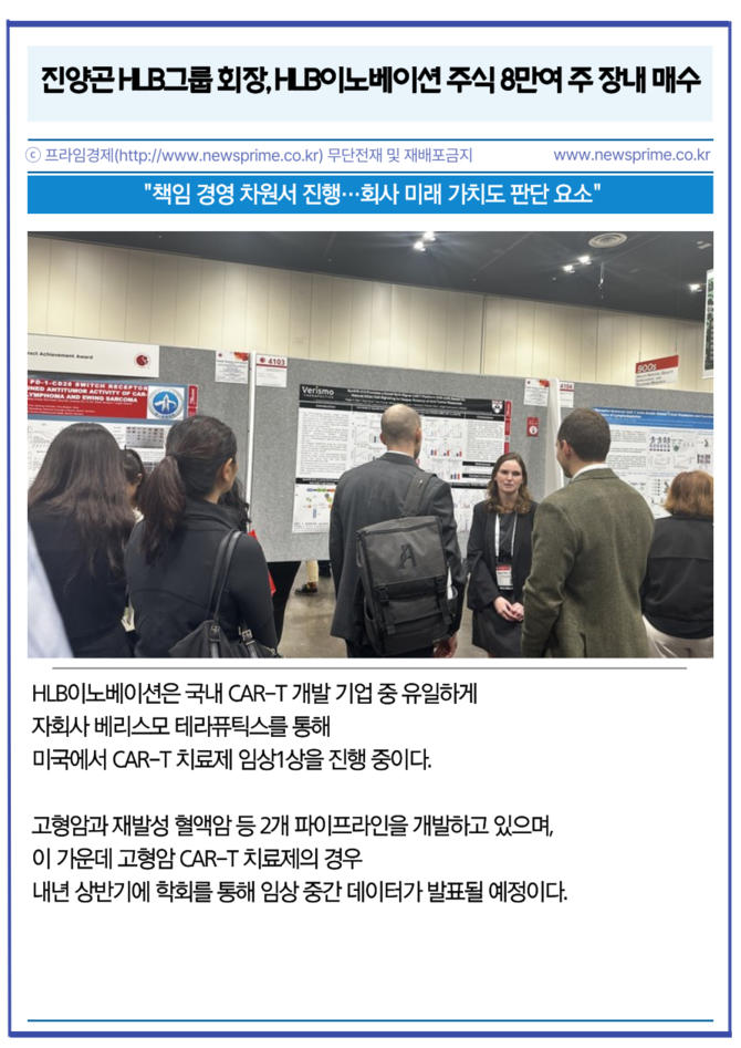 [카드] 진양곤 HLB그룹 회장, HLB이노베이션 주식 8만여 주 장내 매수