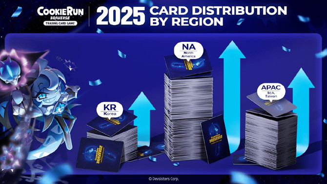 [프라임경제] 데브시스터즈(194480, 대표 조길현)의 TCG(트레이닝 카드 게임) '쿠키런: 브레이버스 카드 게임(이하 쿠키런 카드 게임)'이 올 한 해 전 세계 유통 계약된 카드 규모가 총 5000만장을 넘어섰다고 밝혔다.