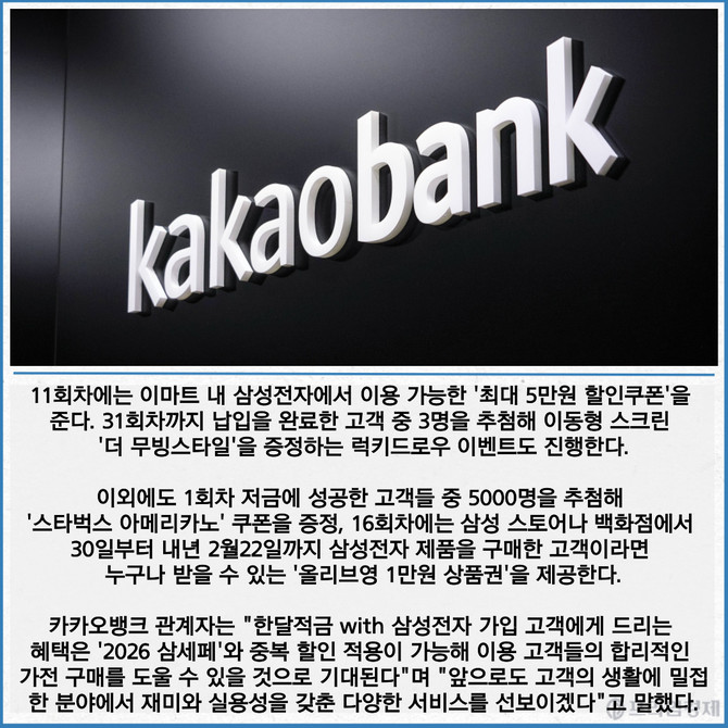 [카드] 카카오뱅크 '한달적금 with 삼성전자' 출시
