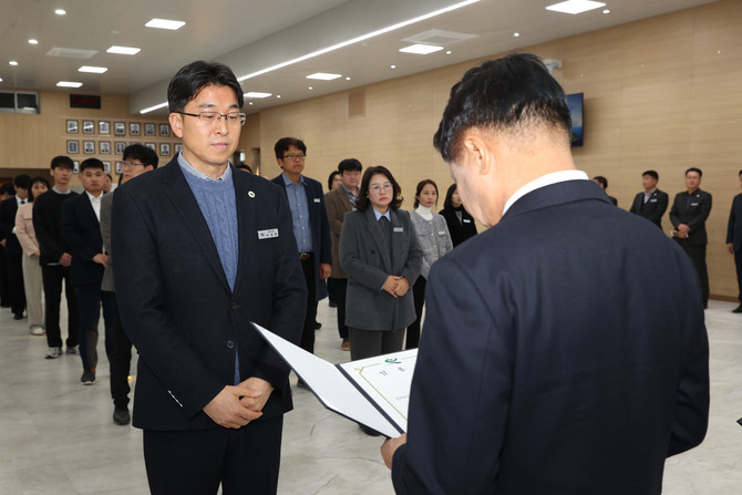 고성군은 12월29일 고성군청 대회의실에서 '2026년 상반기 정기인사'에 따른 승진자 및 부서장 전보자 54명에게 임용장을 수여했다고 31일 밝혔다.