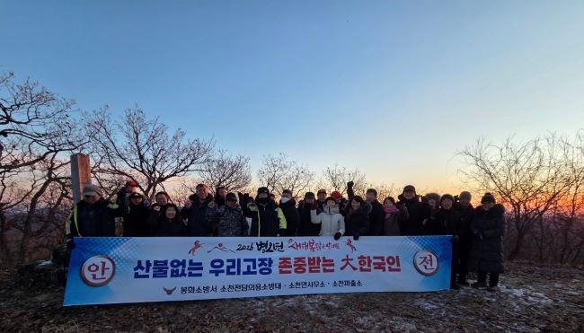 소천면 산악회(회장 김진학)와 의용소방대(대장 장부윤)는 지난 1일 청옥산에서 새해를 맞이하는 해맞이 행사를 개최해 희망찬 새 출발을 알리고 산불 예방 캠페인도 실시했다.