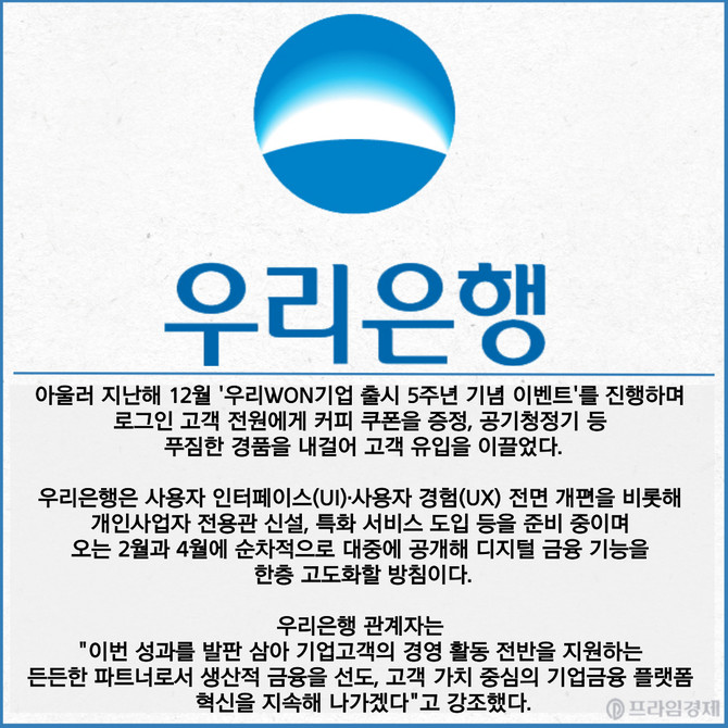 [카드] 우리銀 '우리WON기업' MAU 17만8000명 돌파
