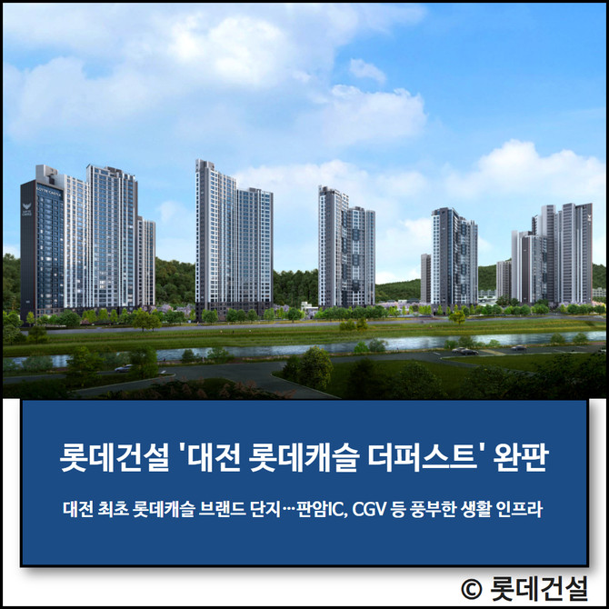 롯데건설이 대전 동구 가오동에 공급하는 '대전 롯데캐슬 더퍼스트(이하 롯데 더퍼스트)'의 전 가구 계약을 완료했다고 9일 밝혔다.