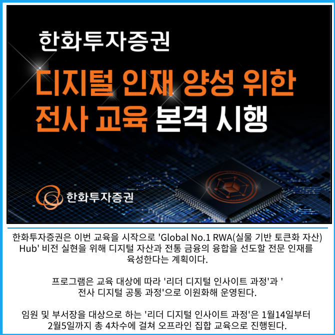 [카드] 한화투자증권 '디지털 인재 양성 위한전사 교육' 시행